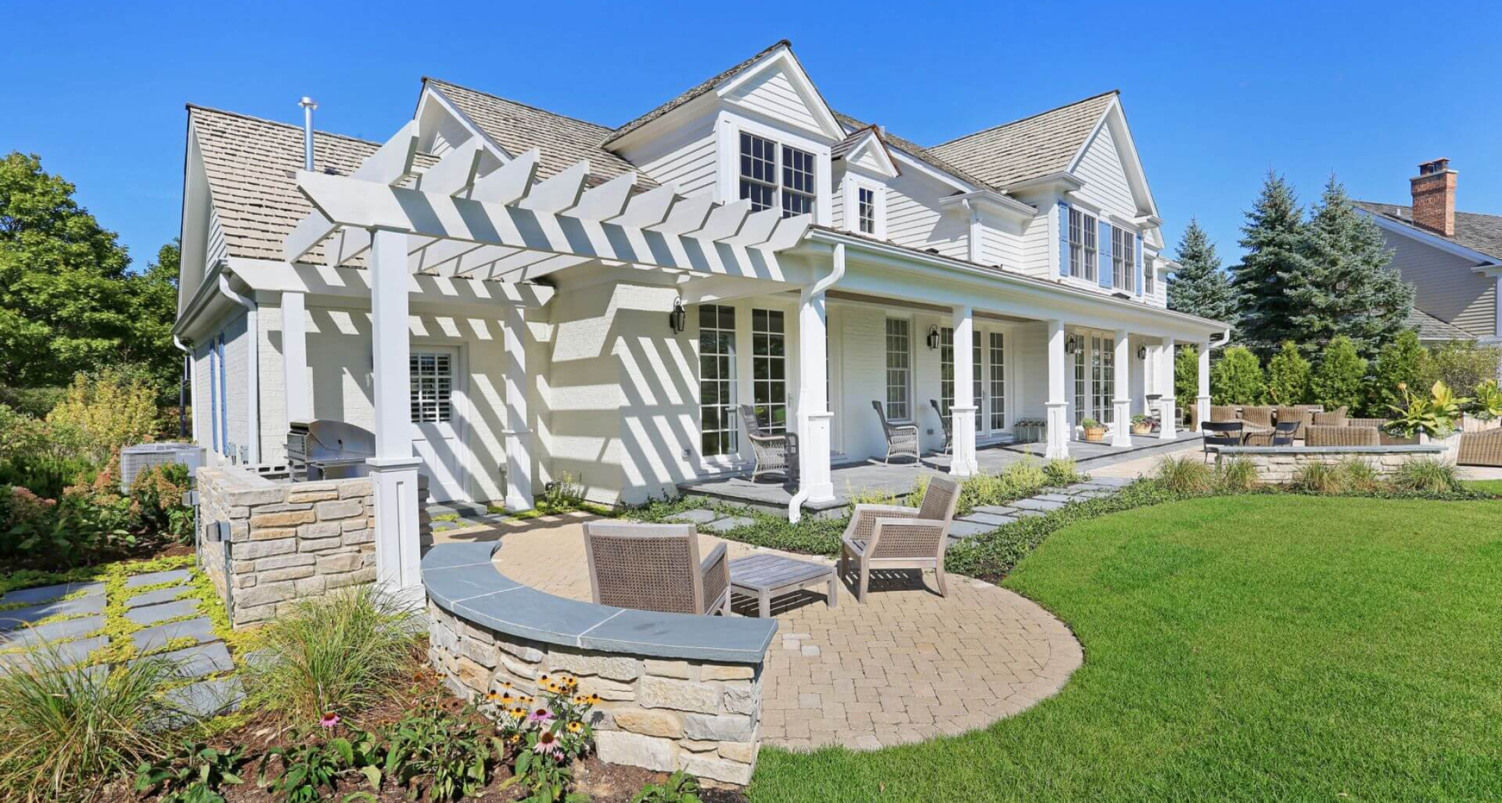 A coastal-inspired residence in Lake Forest, IL, combining East Coast architectural tradition with refined Midwestern charm.