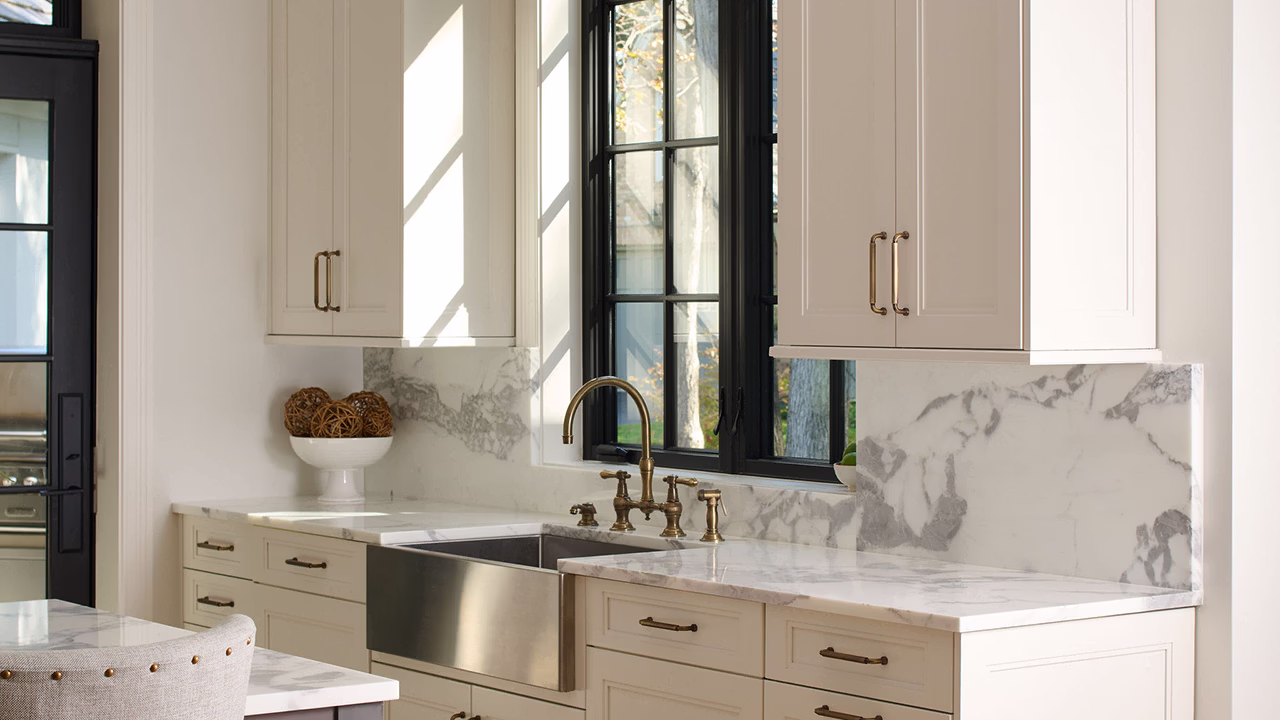 Symmetrical rooflines with cupolas, detailed masonry, and a warm material palette define the home’s timeless curb appeal. Inside, luxe features like a custom wine display, dog wash station, private elevator, and a white oak–paneled library reflect the thoughtful precision and elegance A. Perry Homes brings to every detail.
