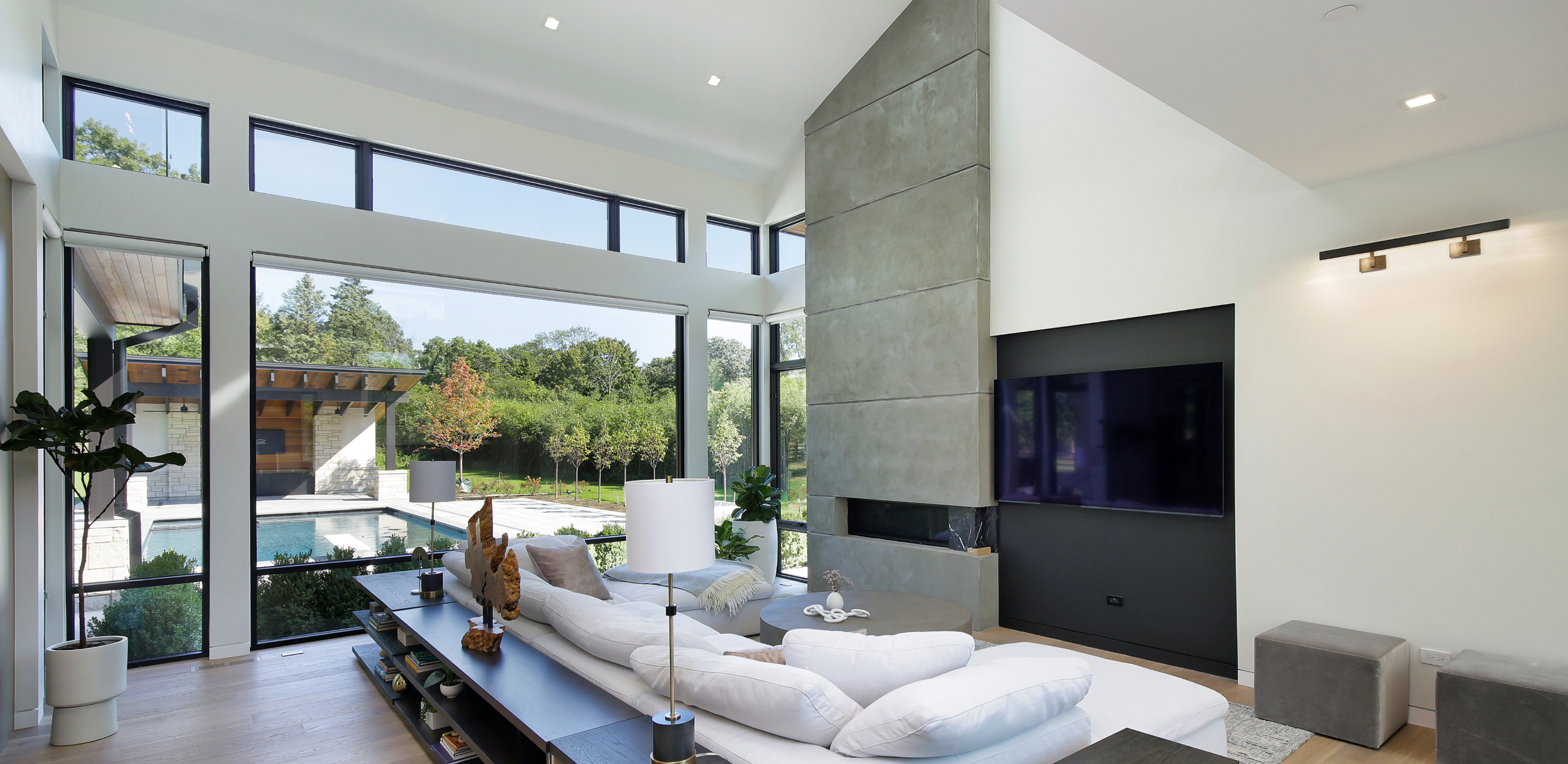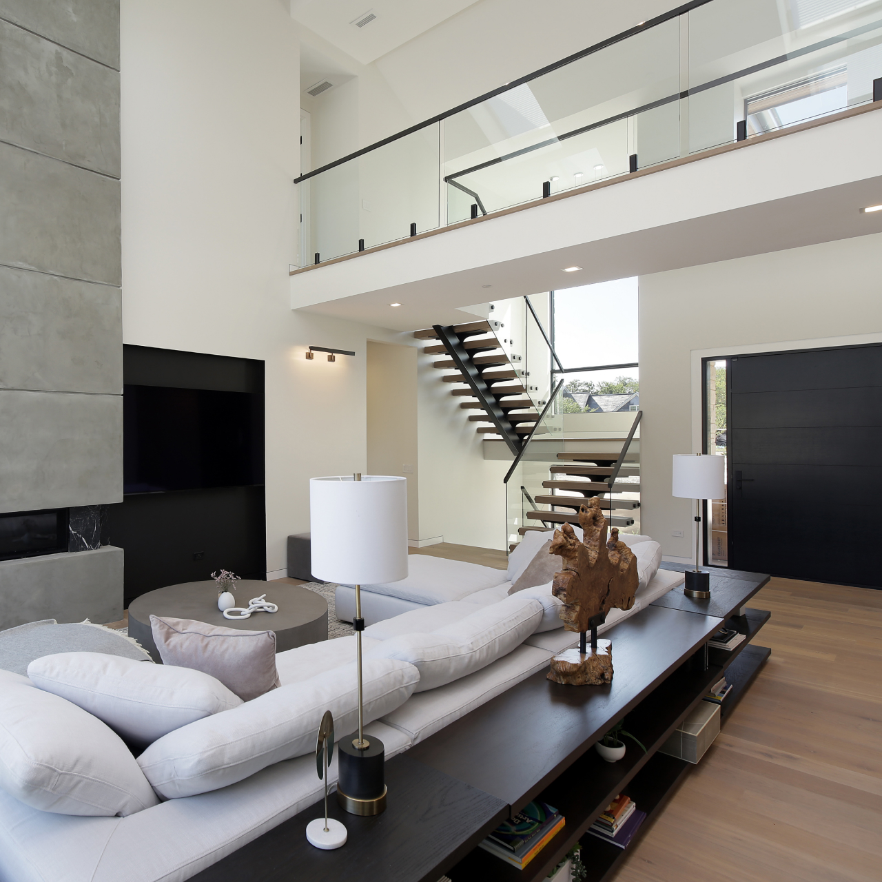 Crafted for a homeowner with a taste for minimalist elegance, the Libertyville Modern West Coast residence blends open-concept living, natural materials, and expansive glass to create a seamless indoor-outdoor experience. This custom home reflects A. Perry Homes’ commitment to modern design and high-quality craftsmanship, perfectly suited for the stylish Libertyville community.