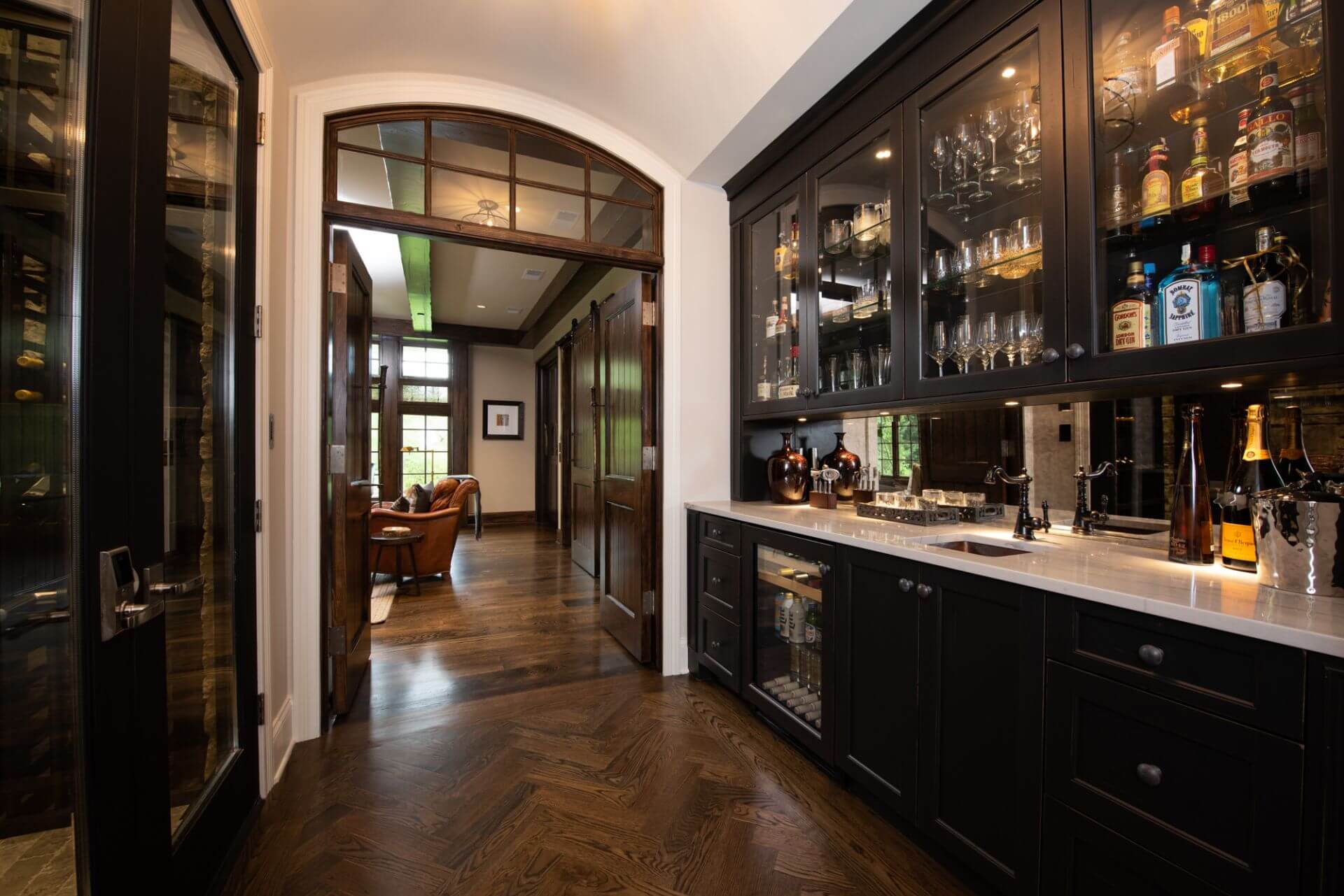 The estate unfolds with a stunning pool and elegant cabana, complemented by a refined formal dining room and a soaring two-story paneled office. These lavish amenities—including a private salon and gym, intimate cigar lounge, serene three-season room, and a meticulously crafted wine cellar—are all brought to life through the exquisite craftsmanship and visionary expertise of A. Perry Homes.